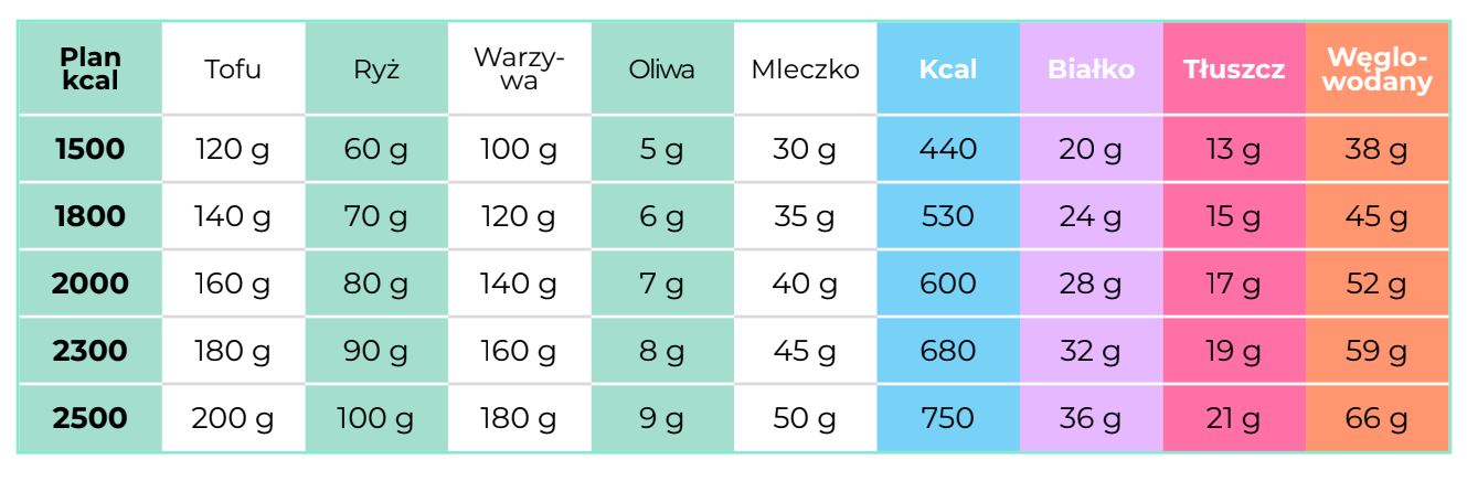 Chcesz przygotować danie w wersji wegetariańskiej? Nic prostszego! Wystarczy zamienić 100 g indyka na 120 g naturalnego tofu.