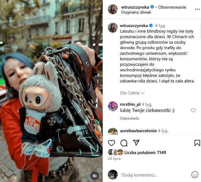 — Labubu i inne blindboxy nigdy nie były przeznaczone dla dzieci. W Chinach ich główną grupą odbiorców są osoby dorosłe. Po prostu gdy trafiły do zachodniego uniwersum większość konsumentów, którzy nie są przyzwyczajeni do wschodnioazjatyckiego rynku konsumpcji błędnie założyło, że zabawka=dla dzieci. I stąd ta cała afera.